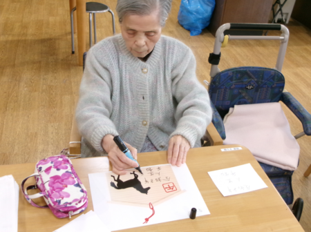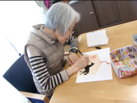 こちらのユニットでは絵馬を作成しています。皆さん真剣な眼差しです。