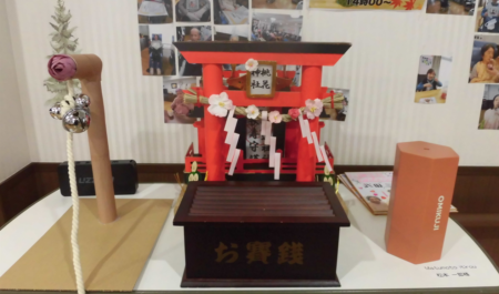 今年の桃花神社はコンパクトで良いですね。毎年、職員が様々な作品を作ってくれます、さすがですね。 全利用者様からお願いごとをいただきました。