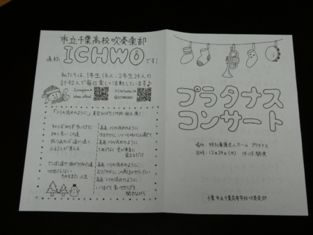 プラタナスの一年に一度の一大イベント 市立千葉高校吹奏楽部・ICHWOの皆さんによるクリスマス演奏会が今年も地域交流スペースにて開催されました。