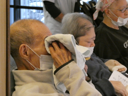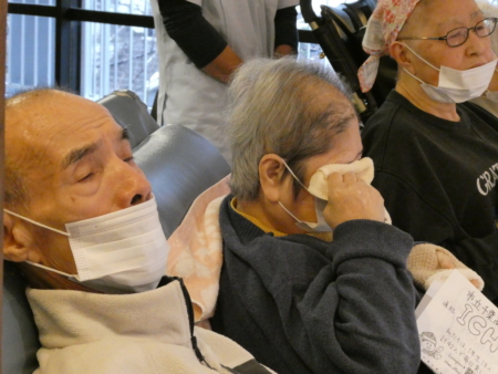 生の演奏を肌で感じ、心で感じ、いろんな思い出が甦り感動の涙を流されていたご利用者様。タオルで涙を拭う姿にこちらも目頭が熱くなりました。