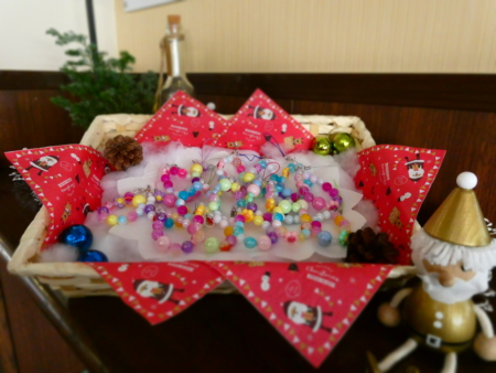 一つ一つビーズを選び、紐に通す順番を一生懸命考え、世界に一つだけのストラップを作成しました。