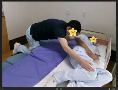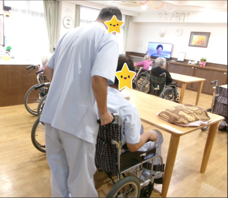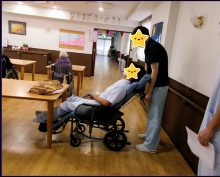 車椅子移乗も無理な姿勢で行うことで、利用者様も不安になり、職員も腰を痛めてしまいます。やはり定期的にお互い見直す時間が必要ですね。