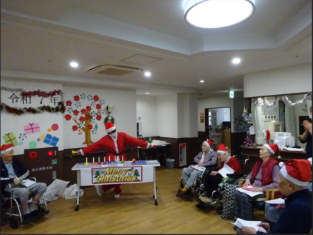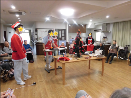 別のユニットでは職員がハンドベルのショーを開催しています。良い音色がリビングに響き渡っています、癒されますね。