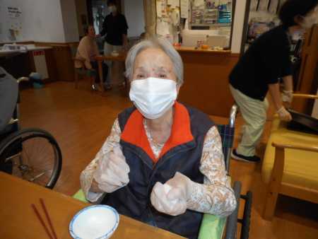大好きな日本酒(ノンアルコール)を前に満面の笑顔です。良かったですねえ。ほんとにお好きなのが伝わってきます。