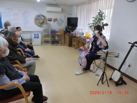 令和8年2月19日 三味線のボランティアに来ていただきました