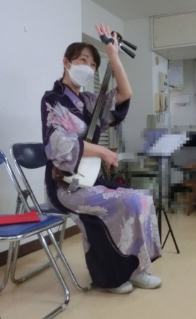 津軽じょんがらから童謡まで、バチの響く音、弦を弾く良い音色、三味線の生演奏に皆さん手拍子も自然に出てきます。涙を流す人も。ご衣裳も素敵でした。また、お出で下さい。是非お待ちしています。ありがとうございました。